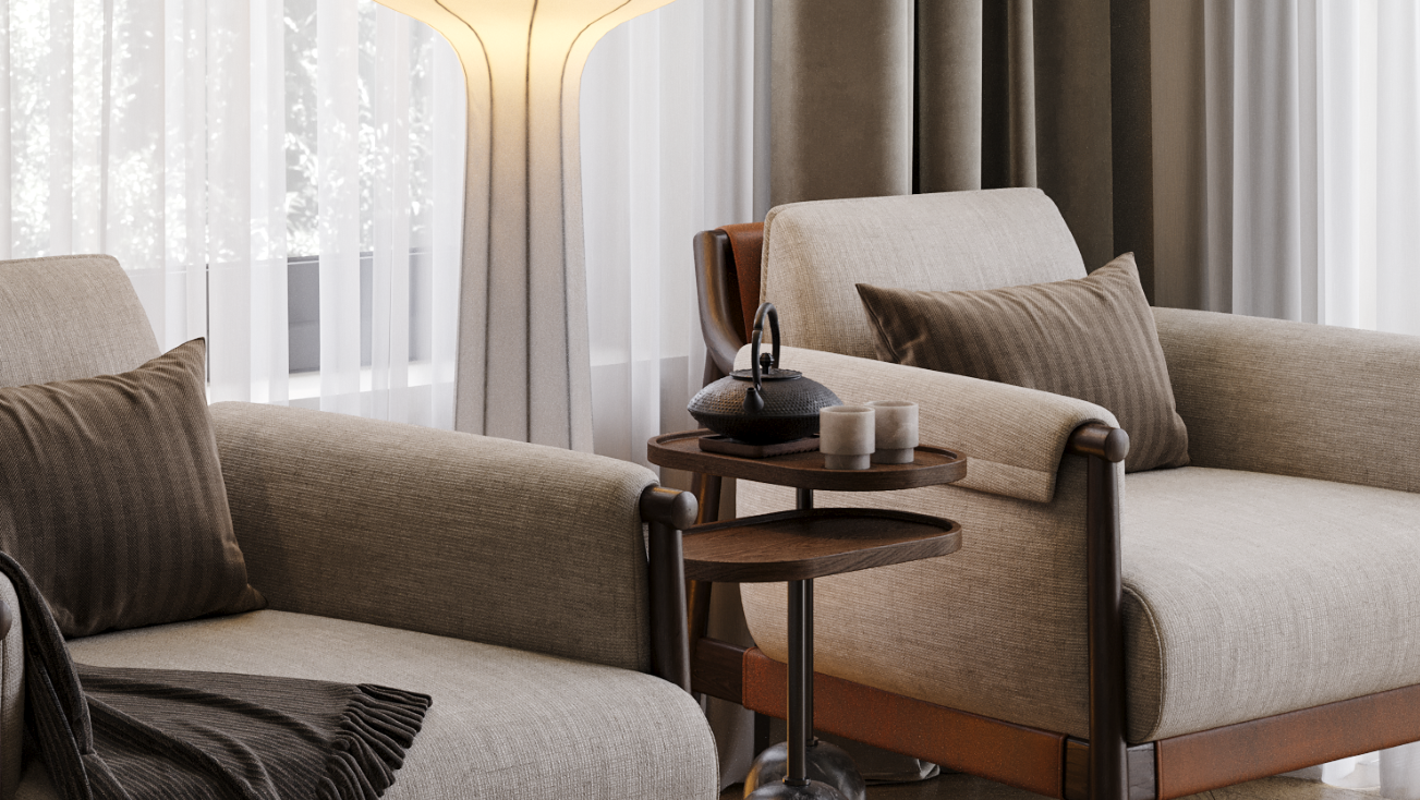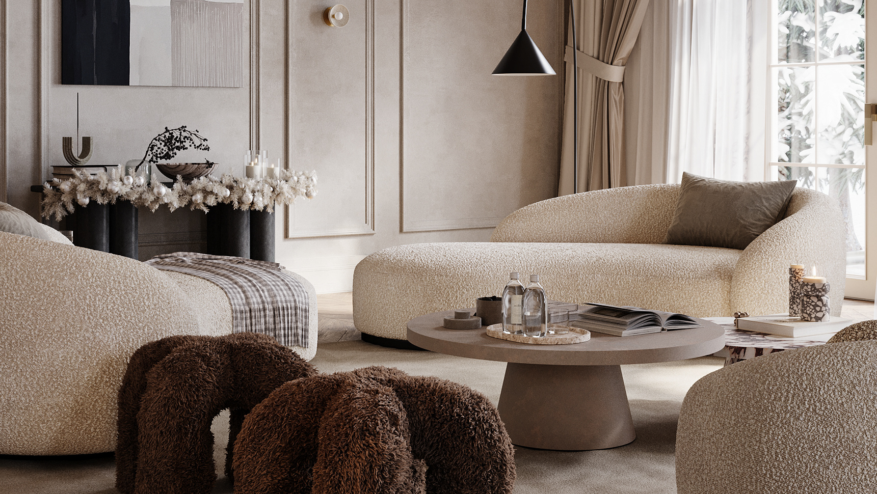 Contemporary apartment in a modern minimalist design style. The palette and materials were carefully selected to create a unique quite atmosphere, yet with surprising accents. The living room and kitchen were separated so that both spaces did not interfere with their functionality, and the bar counter creates a smooth transition to bring everything together.